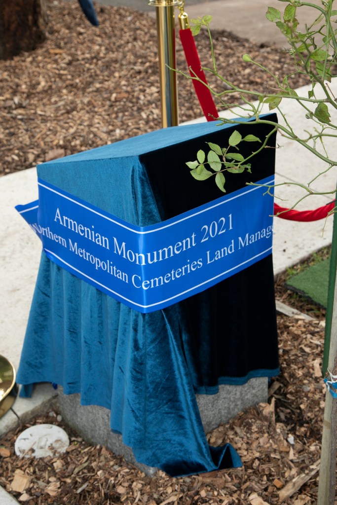 The eight-metre high monument was unveiled on Saturday 2nd April 2022, at the Frenchs Forest Bushland Cemetery, in the presence of the Hon. Jonathan O’Dea, Speaker of the NSW Legislative Assembly and Chair of the NSW Armenia-Australia Parliamentary Friendship Group, Armenian-Australian community and religious leaders and members of the community.