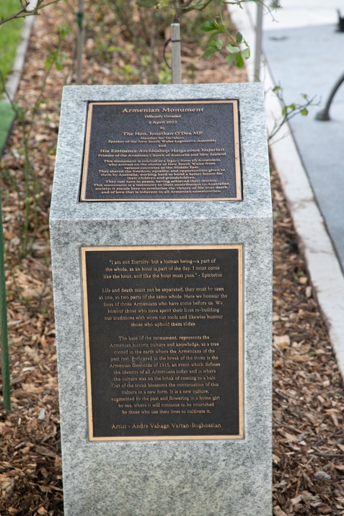 The monument was officially opened by His Eminence Grace Bishop Haigazoun Najarian, Primate of the Diocese of the Armenian Church of Australian and New Zealand and Jonathan O’Dea, Member for Davidson.